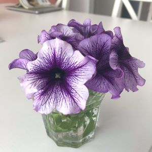 ダメにしてしまったサフィニア…😢残っていたお花は摘んでコップに活けました。