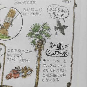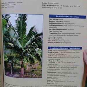 中はこんな感じです。 写真と其の種類の説明が書かれています。 写真配置や文章構成の関係で写真と説明文のページがズレたりしているのは気にしない^^; どうせ読めないし(笑 所で左側の画像はノコギリヤシ🌴ですがこんなに背丈が伸びるんですね。此処迄伸びるとシュロと酷似しています。 成長遅いのにこんなに成る迄一体何年掛かるんだろうか( -_・)?