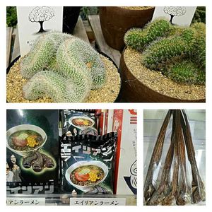ごめんなさい。 今日は少々グロいPICです。 帰省先で見つけてきました。 「脳みそサボテン」は皆さんご存知でしょうが、下のエイリアンラーメンは私も知りませんでした。 食欲を減退させるネーミングとパッケージ! 絶対食べたくないですよね~! クイズです。 右下のエイリアンラーメンのだしを取る物だと思いますが、これは一体なんでしょうか? 名前を答えてください。 ついでに エイリアンラーメンの一袋の値段と脳みそサボテンの値段もあててください。 う~ん。今回は回答者は少ないかもねぇ~。 出題してる方も 気持ち悪くなってくるから…⤵⤵笑 (๑-﹏-๑)