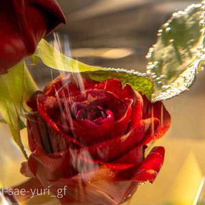 2021年2月14日 よみうりランドのHANA BIYORI ガラス瓶の水に浸かる赤い薔薇