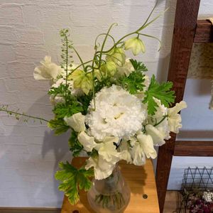 お花を頂きました💐 白いお花が好きだろうと 私の好みを推測して選んだそうです。 はーい!正解です。 白い花🌸大好きです💕