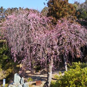 しだれ梅が咲き始めました 花言葉 優美 優雅 友人宅で