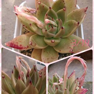 こんばんは♪ 朝の霧も晴れて晴天の一日でした❣️ 今朝の我が家の多肉pic❤️ 手前の黒爪ザラゴーサに花芽(ニョロン)が👍 後ろのプロリフェラも可愛い😍 なおさんの🏷ニョロンの日に参加します😆