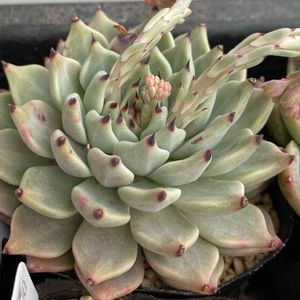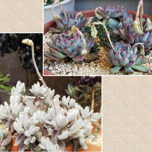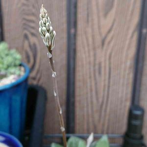 ニョロン(26日)の日、参加します! 🍂クリスマスイブ エケベリア属 11月に花芽が出て、2月に開花🌼 今も、ニョロンと伸びながら咲き続けています。 なんと!元から25cm😵 あと二つの花芽は、カットして土に挿しました。 それでも、花🌼咲き始めましたよ。