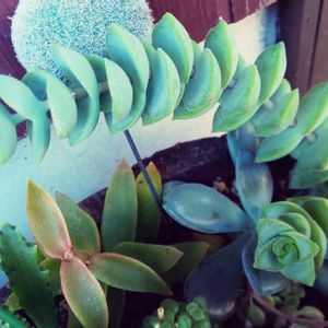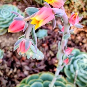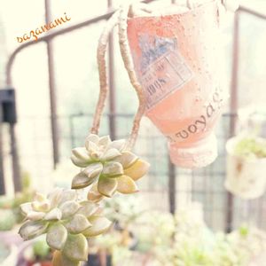 澄江(エケベリア)の花芽で⬅️ なおさん主催の「ニョロン(26)の日」に参加させていただきます🏷 花芽じゃないけどニョロンのビアホップ⬆️ ダイソーからお迎えした時は1本苗でした。 久しぶりにハンギングを降ろしてみたら、もりもりになっていてビックリ💗 雨ざらしマッコスはニョロンニョロン⬇️ でも、可愛い秋顔になってきました🍁 それに株元にはお子ちゃまいっぱいです。 エケベリアの澄江は 作出者さんが奥様の名前を付けたことで有名ですね。 本当に素敵なお話✨ ちなみに、、、 うちの主人はたまごっちに自分の名前を付けた男です!