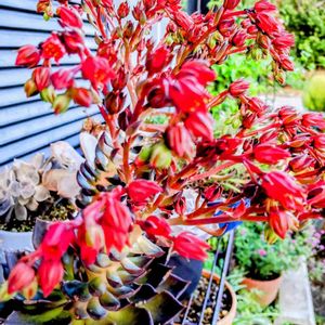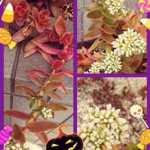 火祭りさんが紅葉して花が咲きました𓂃🍁 🏷 ニョロン(26日)の日 に参加します🤗 今日は午前中から雨が降って寒いです 気温21℃予報😰 でも朝のうちに多肉ごとができたのでよかったです😊