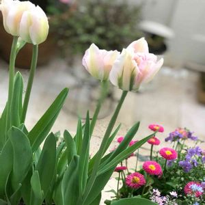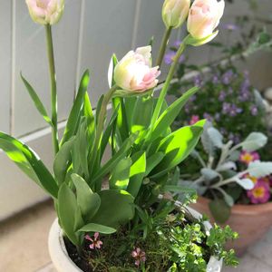 日陰に置いてたからかな?? 😂 まだ 色も付かないチューリップです🌷🌷🌷