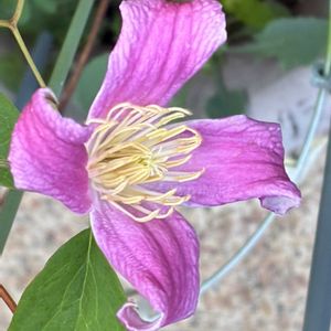 8℃(6:55) 快晴☀️☀️☀️ 寒い🥶 クレマチス 仙台のカザグルマ 一輪だけ咲いている