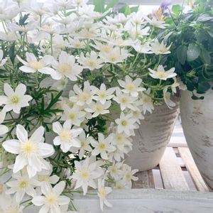 私から私に誕生日✨🎁✨③ クレマチス カートマニージョー ず~っと欲しかったコ♥️ 真っ白で清楚で お家に来たらますます美人😍 鉢を替えて まあるい支柱を立てようね🎵