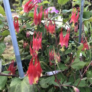 12.5℃(5:50)快晴☀️ 日の出が随分と早くなりましたね 今朝は5:00でした 今日のお花 オダマキ ①リトルランタン (カナダオダマキ) ②鉢上げしたもの ③ オダマキ ローズバロー ④ミヤマオダマキ?? ⑤ナハトムジーク つる伏せからの開花♡
