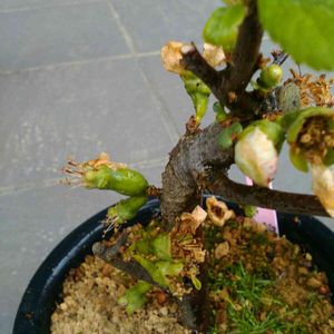 こんなに小さな鉢植えのボケに、こんなにかわいい実がついてます💕 木の為には取った方が良いと思うけど、どこまで大きくなるか興味があるので、もう少し置いておきます(^-^) ボケ、漢字でかくと木瓜! 納得です(^O^)