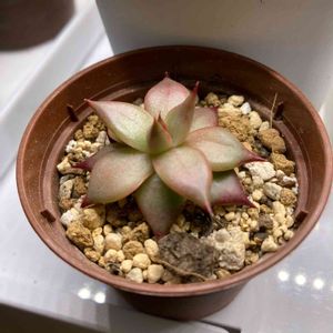 今朝は多肉殺しの天気模様でした😞朝雨が降り、その後すぐに日光が照りつけ、雨晒しだった無数の多肉植物が星になって逝きました😭 奇跡的に蒸れに激弱なロメオは生き延びていました😭❤️雨がかかりにくいところにいて、乾きが良い鉢に植えていたのが功を奏したようです。でも全身で暑さストレスを表現しているかのように紅葉しています。 R.I.P. ☆になったコたち💐