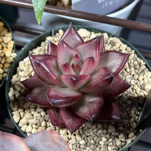 こんにちは☀️ うちにも鮮やかの子をお迎えしました12.20🍃🌹 ずっと欲しかったロメオෆ̈ (*´艸`*) 緑ばかりの多肉エリアに唯一華やかな子が✧︎*。 グリネはおまけちゃん💚 だけど、調べてみたらロメオは難しく夏場ジュレやすいみたいね💦 来年夏まで楽しめれば良いかな... ( ̄▽ ̄;)