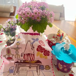 🏷️ムーミンの日🌸参加しま〜す🥰💕 大好きムーミンのカップとハンカチ💕😘先日届いてニマニマしちゃいました🤣 カップばっかりこんなにいらないだろ〜と言う声が何処からか🤭 ⭐️サイネリア 家の中🪴唯一のお花🌸春らしいこのピンクはやはり癒される〜💞 ⭐️ステラスノーストーム グレイシアブルー 🩵 ちっちゃな花瓶に💕親は外にいるのですが、お花が乱れて来たので、切った子をお家の花瓶に入れてたら白い🤍色に変身した子がいる⁉️ブルー🩵と🤍になってるけど、何故だろう🧐 今日はいい天気だけど、午後から仕事だから、昼にはビニールハウスに入れて、不織布かけて行くぞ〜 朝出してお昼には入れるこのルーティン最低気温がもう少し高くなれば❣️待ち遠しい春です🤗 今日も1日皆様にとって素敵な日になります様に🥰✨✨💞