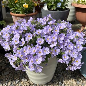 今日から4月というのに寒いですね🥶 先月寄せ植えしたお花達です☺️ ①久しぶりにネモフィラをお迎えしてローダンセマムとスカビオサその他🍃と寄せました☺️ ネモフィラが生育旺盛で🍀が見えません🫥 ②ステラスノーストームは優しいお花に一目惚れしました😍 バコパも久しぶりにお迎えしましたが小花が可愛いです💜 ③アズーロコンパクトスカイブルー無事に冬越ししました😆 中の方が少し茶色になってますが、こちらのパフォーマンスは素晴らしいです👏 今月もどうぞよろしくお願いします (❁ᴗ͈ˬᴗ͈)ペコリ。:.゚ஐ⋆*
