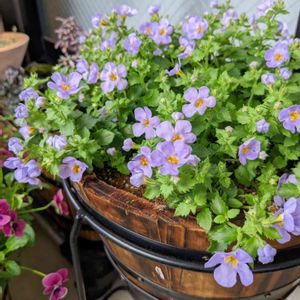 ステラ スノーストーム 💜グレイシアブルー 成長が早く次々咲いています✨ バコパ特有の香りがしてそれも、良いですね〜