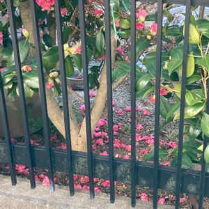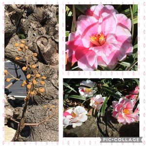 通りがかった公園にきれいな椿の大木がありましたが遠くで小さくしか写りません。近くに行くと、足元にきれいな椿がいっぱい落ちていて、喜んで写しましたよ。こんな椿が欲しいな^o^。そのそばの実の付いた木は桐でしょうか?