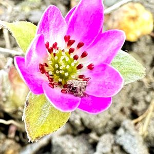 厳しい冬にも負けず お花を咲かせています ユキワリソウ 別名ミスミソウ(三角草) 花言葉「あなたを信じます」「信頼」 🏷ちっちゃいものクラブ 🏷19日はピンクの日 🏷乙女色クラブ 参加させて頂きます 2023・2・18 向島百花園