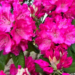 今日のお花💕シャクナゲ 約1ヶ月前の浜名湖ガーデンパークで、 咲き始めたばかりの頃でした。 鮮やかな色と、一塊りの花の大きさは 遠くからでも存在感バッチリでした。