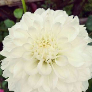 少しクリームがかっている〜白いダリアさん🎶💖 満開になって➖真ん丸🙆♀️が可愛い💕🌼💕