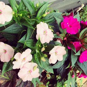 ニューギニアインパチェンスの薄ピンクと濃いピンク色〜🎶💖😊 やはり、季節のお花さんは🙌🙌😃元気にドンドン咲いて来る❣️✌️