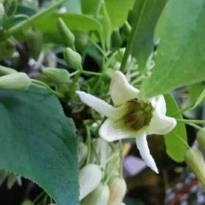 おはようございます´•ﻌ•`🐾 今年はいっぱい咲いたよ🌸*✲゚*🌸*✲゚*🌸 アケビみたいな実が出来ます