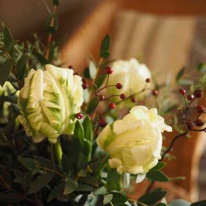 クリスマスもまだだけど、もう春の訪れを感じるチューリップを飾ってみました。 野イバラの実を合わせて、ほんの少しクリスマス気分🎄