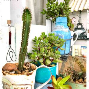 おはようございます☺️ maiちゃんのリメ缶に植えてる クリスタルちゃん産の七福神サマの方から お花が咲き始めてた〜💕 昨日の☔️が溜まってるけど😆 大きくなってきてる(๑•̀ㅂ•́)و✧