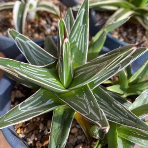 色の日🏷 モアイが無いと物足りないですね💦 今、🐳ちゃんのクイズに正解し、期間限定女王様と呼ばれているので、小さいですが、中国の女王様を😁 楊貴妃って、菊や桜、芍薬あたりでも見かけますね😊 アガベ の楊貴妃は、斑の入り方がいろいろで、好きな人はいくつも集めちゃいそう。 一時期より安くなったかな? 人気の黄中斑じゃないせいか、ホムセンで二千円からお釣りがきました。 私、虎斑好きだからラッキーでした😁