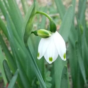スノーフレーク 白くてかわいいお花が咲きました🎵 スノードロップと良く似てますが、又、違うのですね~😃 (スノードロップは斑点が花の中心にあるとか)