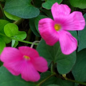 オキザリス オキザリスが咲いています。 少し日陰にいるので、 暑くても褪せずに鮮やかです。