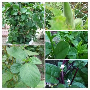 ネバネバ野菜 [今、庭で獲れる ネバネバ野菜] *オカワカメ *モロヘイヤ *オクラ *ツルムラサキ(緑) *ツルムラサキ(紫)