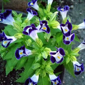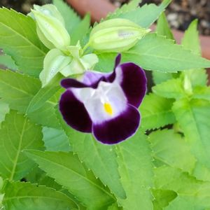 トレニア 昨年のこぼれ種から鉢の隅っこに1本だけ芽がでました。