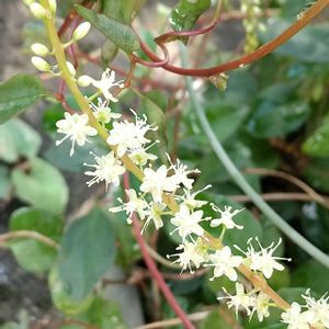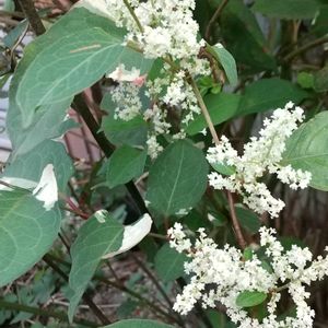 斑入りイタドリの花 長年の間、庭にあるイタドリですが、今年初めて花を見ました🎶 枝が伸びる度に短くカットしていたので、今までに花が咲いたことはありませんでした。 か、今年の暑さで咲いた~?