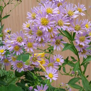 紫苑 花は野菊とよく似ていますが 紫苑は背が高く、 控え目な野菊と違って華やかです。 「夜なべ草」とも呼ばれ、昔の人(お嫁さん)はこの花が咲き始めると夜なべ(夜にする裁縫や内職など)をする季節と言われたそうです😢 お彼岸が過ぎて日が短くなると、いうことですね。