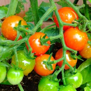 ミニトマト 今朝の天気予報では 台風が近づいているとのことだったので、 撮影後に赤くなっているのだけを摘み取り、強風の当たらない場所に移動させました。 その後、台風は温帯低気圧に変わったことを知りました😀