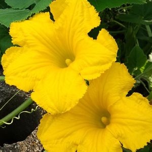 カボチャの花 雄花がいっぱい咲いています。 雌花は見当たりません😂 果たしてカボチャが出来てくれるのかどうか~?