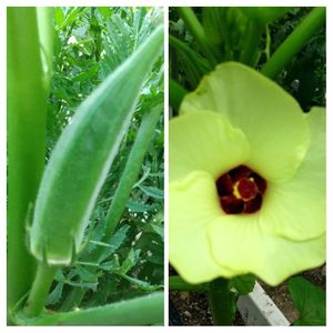 オクラの花と実 毎日数本ずつ採れるようになってきました。