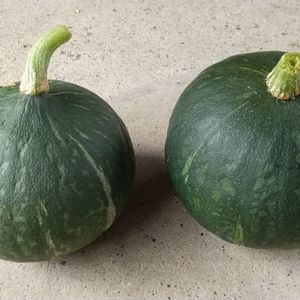 カボチャ 栗カボチャ (直径15㎝) 冬に買って、美味しかったカボチャの種を裏庭に埋めておきました。 近くのフェンスや木にぶら下がって出来ていました。