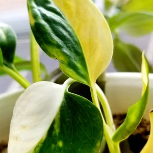 連投💦失礼します 葉っぱがくっきり、パッカーンと分かれてるのを発見👀しました。 しかも、1つは黄色で もうひとつは白🧐 その下の新芽も、分かれてそう。 これは、なんですか? ハーフアンドハーフ😁?