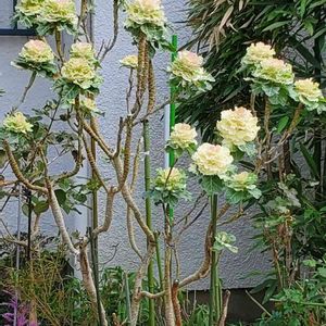 今日のお花🌼踊り、、?直立!葉牡丹🎶 誘引、剪定するでもなく、ひたすら伸ばし続けてこんなのっぽさんに!! もともと花束に入ってたので、切り花用の木立タイプなのかな😊 まだ青々としているけど、これはこれで💛