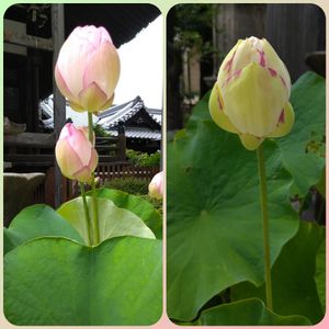 立ち寄ったお寺の💚ハス💚のお花、開花間近です🤗🎶💕