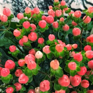 なんてヒペリカムなんだろう…。 ぷりぷりの元気な桃みたい。