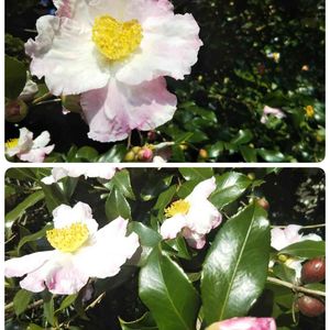 庭の山茶花🌼が咲いた🙌 放ったらかしなのに蕾いっぱい付けてくれてありがとう💐 山茶花🌼 サザンカ🌼 サザンか? 🎵映ってもっとbaby すてきにin your sight 誘い涙の日が落ちる エリーmy love,so sweet🎶 ~いとしのエリー~ by サザンオールスターズ