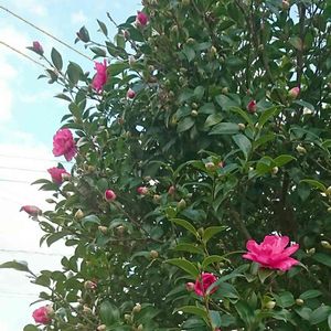 おはようございます☀ 山茶花の季節ですね🌸🍃 昨日の実家の一枚です! 青空が垣間見えました😊