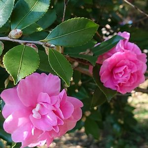 『山茶花』サザンカ 毎年、のんびり咲き始める綺麗な山茶花💞 暖か過ぎると👈のように、蕾のままとか咲かずに落ちてしまいます😵 寒さの残る頃から咲けば良いのにと毎年願ってますが、学習出来ない山茶花のようです(^^;; 可哀想ですが、もう咲けないような固い蕾は✂️です!