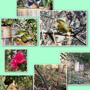 同じ場所でくつろぐ小鳥 上は高いカメラを📷持って 撮っていたお父さんの📷 私の知らない鳥さんがいた オレンジの🧡羽の小鳥 ソウシチョウ 外来の鳥と出てた この鳥は箕面の山でもいた この方の道先案内で コンコンと木をつつく コゲラを見れた 下のは私の撮りです