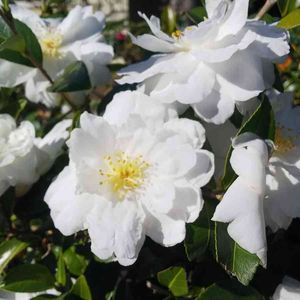 山茶花 🤍富士の峰🤍 肩を寄せ合い、仲良く笑ってるような〜 可憐な🤍白い山茶花に出会えました