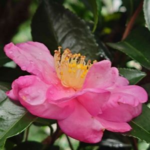 サザンカ ツバキ科属 雨の中で☔ 散る寸前の 花びらも綺麗です🤗