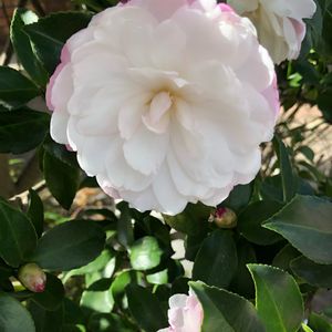 八重咲きの真っ白なサザンカが 綺麗に咲いていました(*^^*)